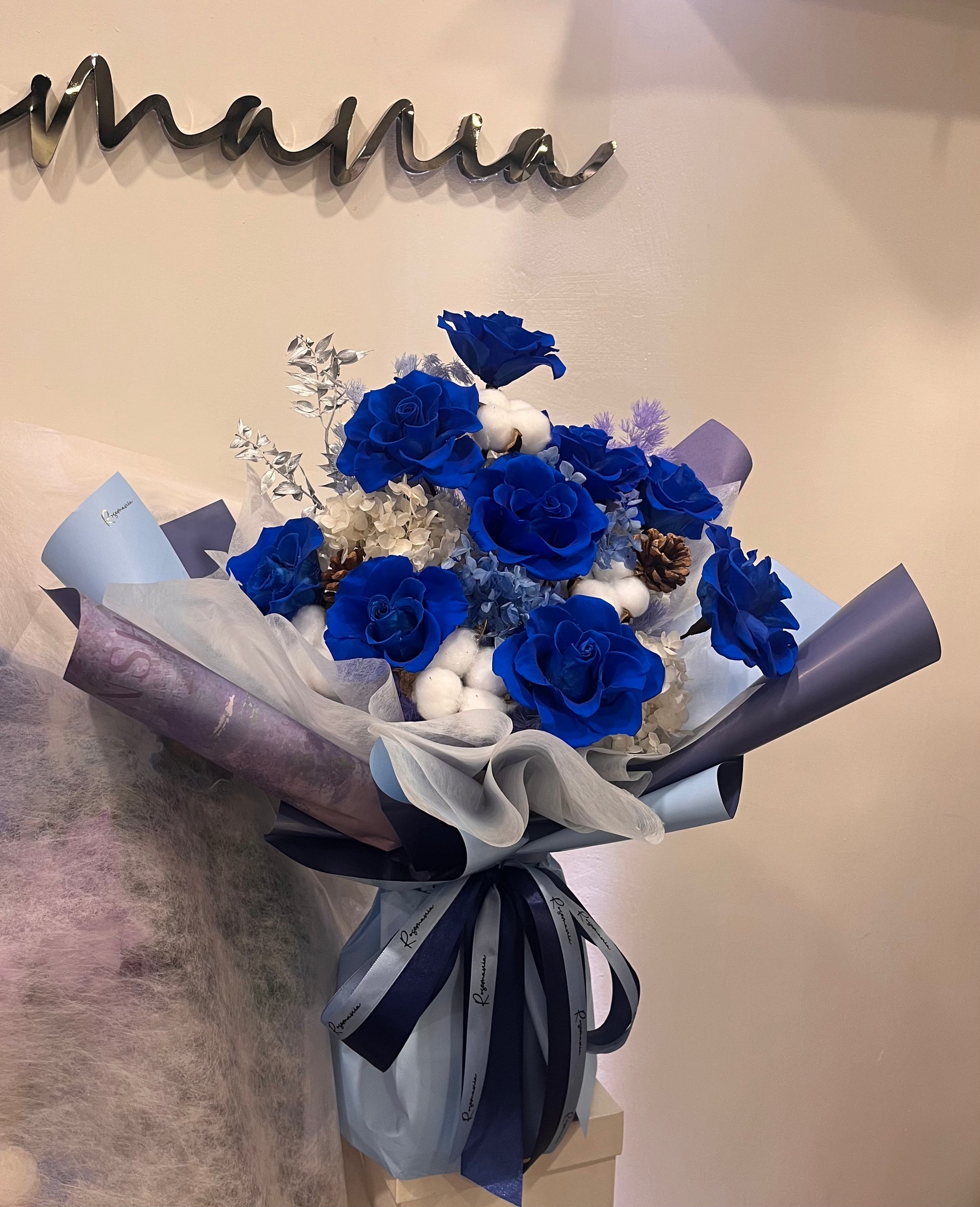 55-60cm Preserved 9 Sapphire Roses Bouquet