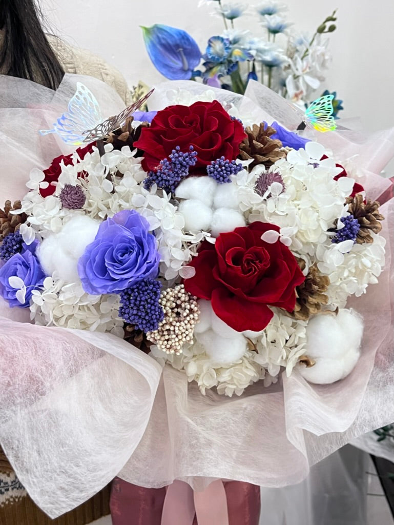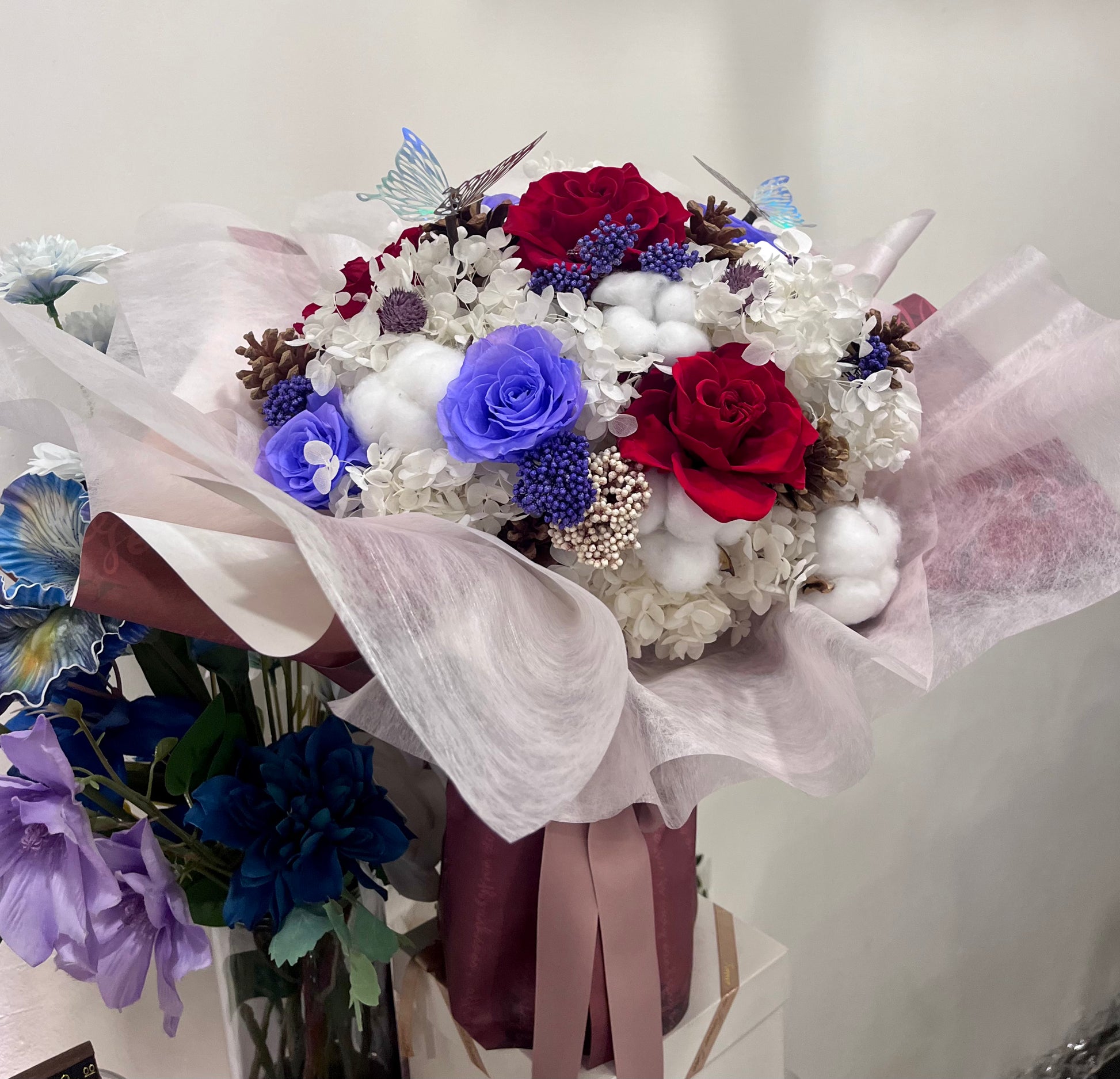 55-60cm Sphere Red & Purple Preserved Roses Bouquet (圓球體)