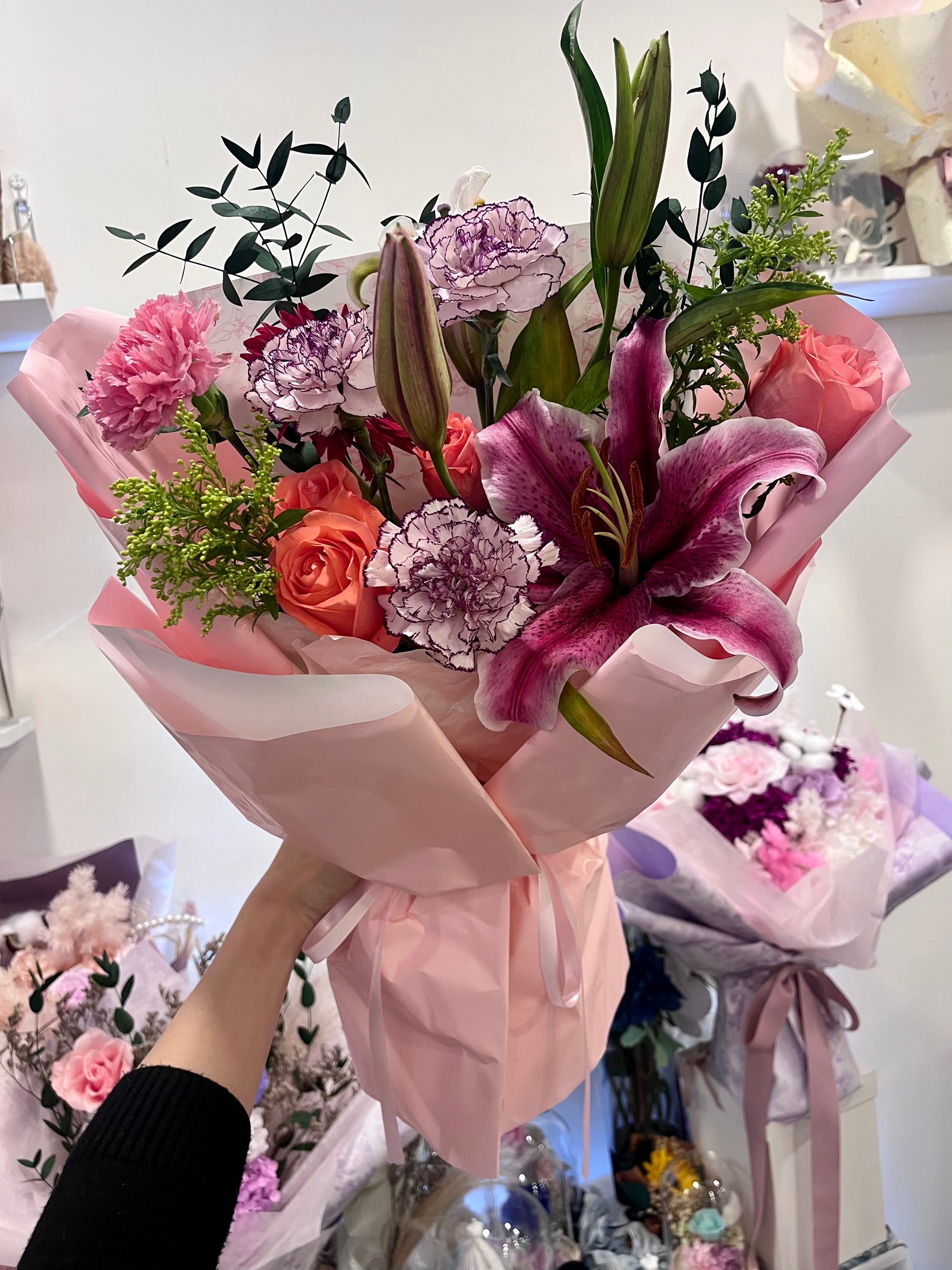 Bright Lily and Roses Fresh Flower Bouquet